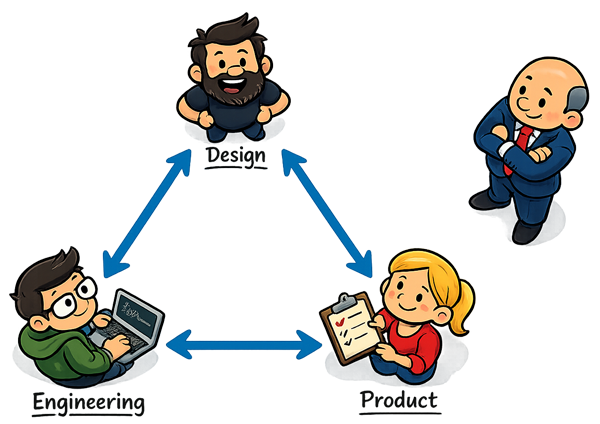 And you can already see the implications at the organisational level. For years, product teams were built around a familiar triad: design, product, engineering. But these roles were never naturally aligned. Three roles, three perspectives, a healthy tension between them. Design pushed for experience. Product pushed for outcomes. Engineering pushed for feasibility.