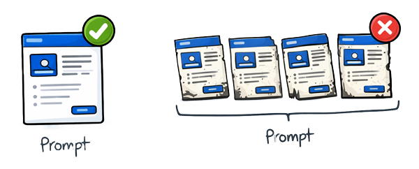 Example. I tested this on a twenty-screen flow last month. Batched: every screen looked plausible, roughly three were genuinely right, the rest needed significant rework. One-at-a-time with a brief: every screen landed or got a specific redirect, total time was comparable, net output was shippable.