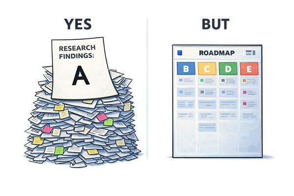 AI makes this failure mode worse, not better. The outputs it generates look complete. They read like research. They do not read like decisions. A well-formatted AI summary is optimised for comprehensiveness, not for consequence. It will tell you what users said; it will not tell you what your business needs to hear.