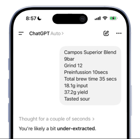 Every morning I would make coffee and try to improve it. If the cup tasted off, I would adjust the grind, the yield, or the brew time. Over time I started typing the parameters of each brew into an AI assistant to ask a simple question: