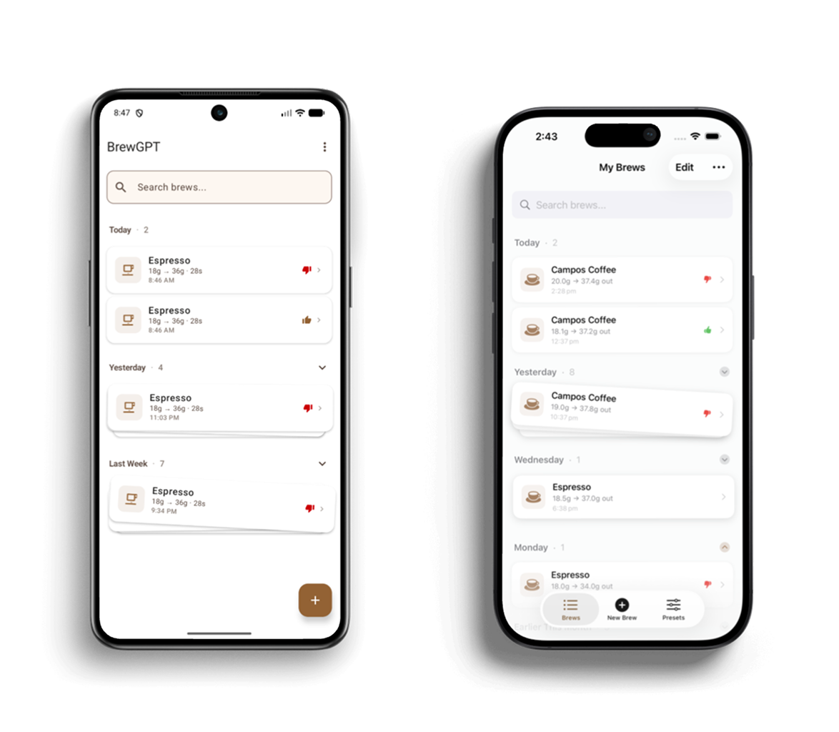 Where supported, recommendations run directly on the device, allowing brewing guidance to work offline while preserving user privacy.Native Cross-Platform Experience