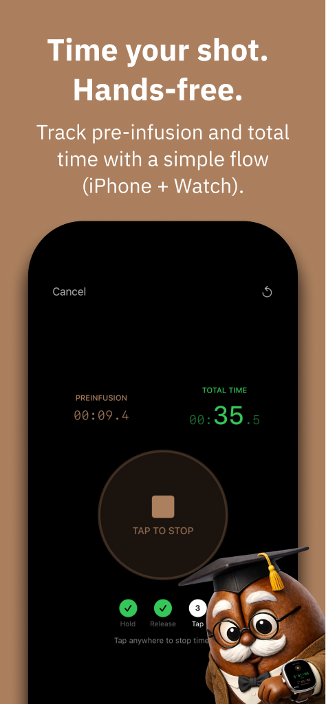 Your hands move between grinder, kettle, machine, cup, and timer. You are watching extraction, listening for changes, adjusting on the fly, and trying not to lose the flow. In that kind of moment, even a well-designed app can become a distraction if it asks for too much attention.