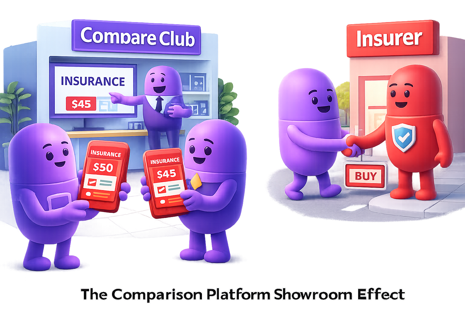 Insurance comparison platforms often win the moment of search but lose the moment of purchase.
