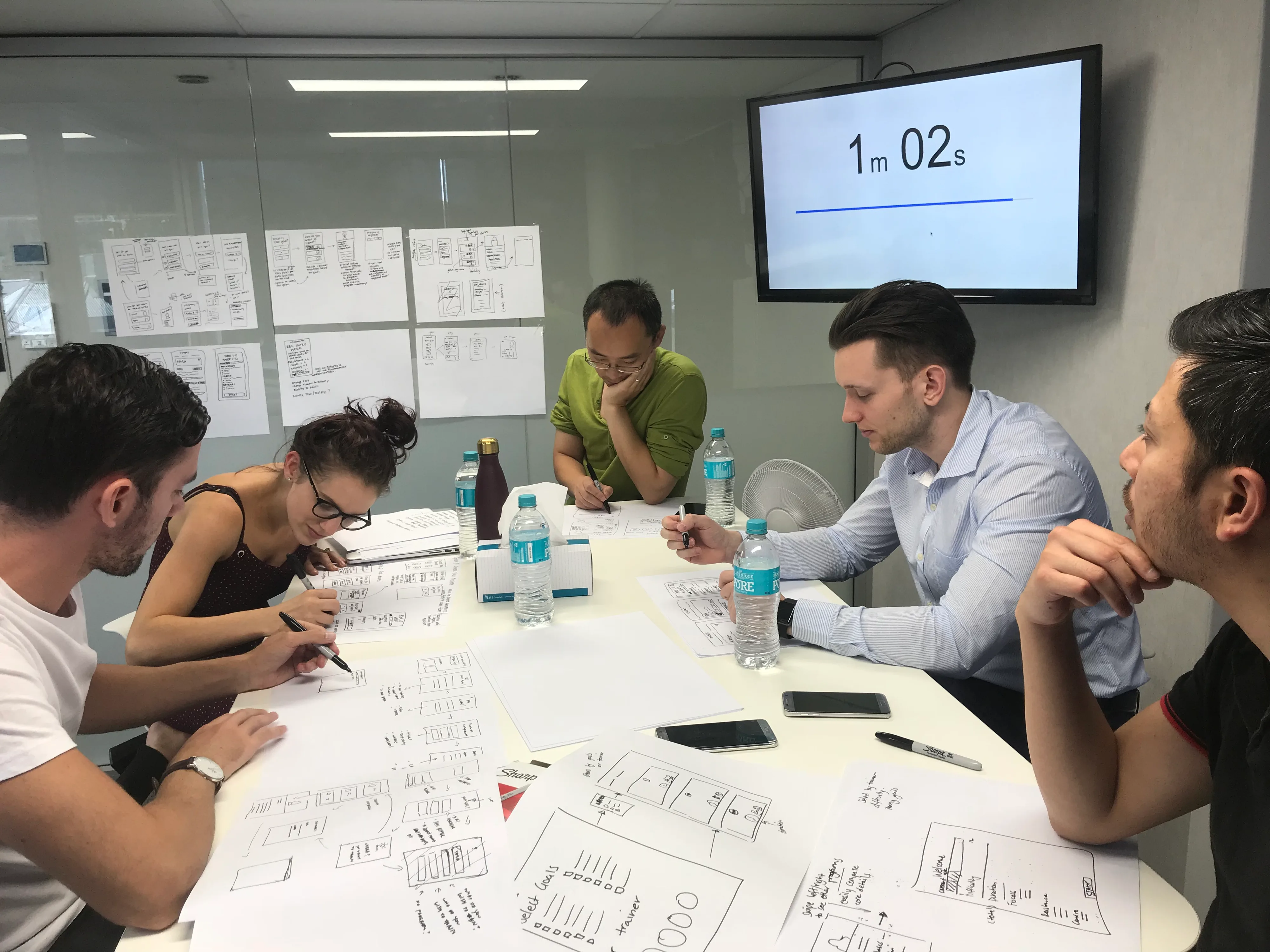 In sweat I designed, led and enacted the process behind the design sprints (not the Jake Knapp ones), created supporting documentation, tutorials and templates and delivered training to development and design team-members.
