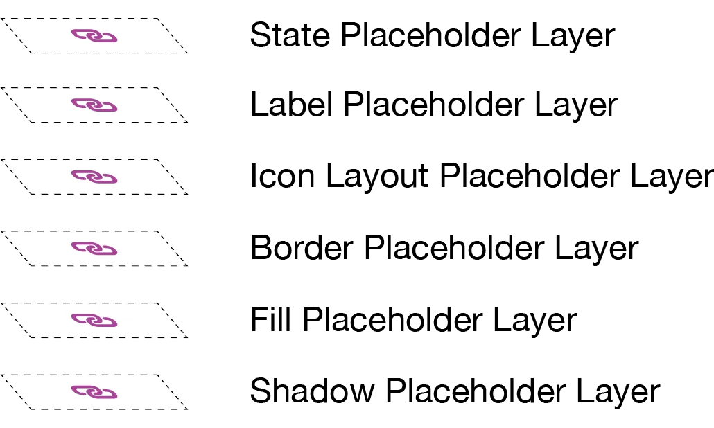 A blueprint is an abstraction of a component (i.e. a button), this is, a generic component that can be repurposed in multiple ways. The blueprint layers of a button, is a series of (symbol) elements layered on top of each other as described below.
