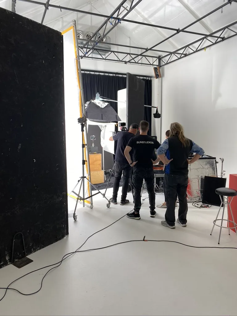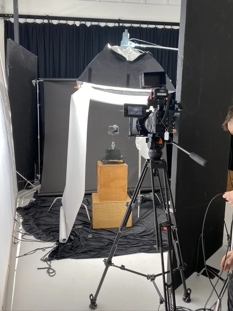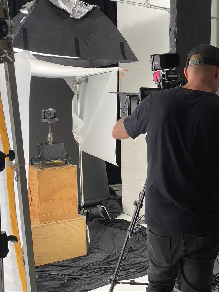 The landing page starts by rotating as-you-scroll on the website. Which meant that we had to create a 360 degree rotation of the camera. In the images below you can see the crew taking the video that we would use on the web-page.