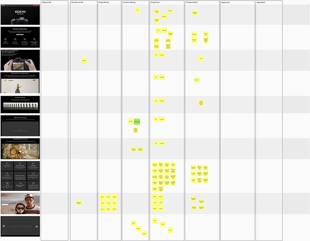 Kanban board for the 100+ assets or copy we had to produce for this page.