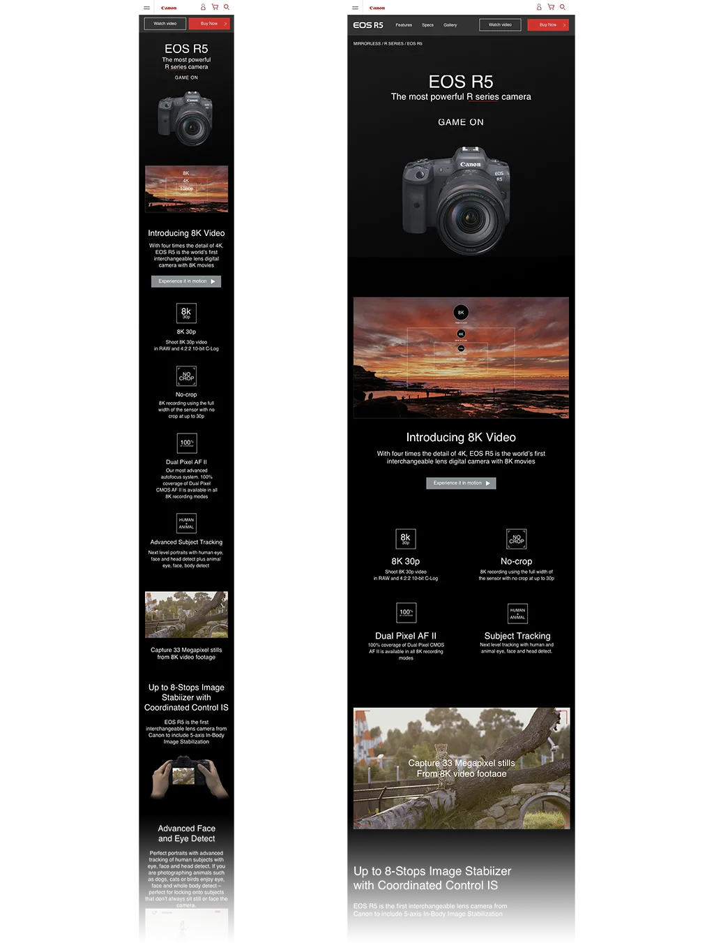 If we hadn't worked on the EOS R5 landing page the way we did, then the page would have had looked exactly like the sister product launch, the R6; just different imagery and copy. And the messaging we wanted to deliver would have been lost.