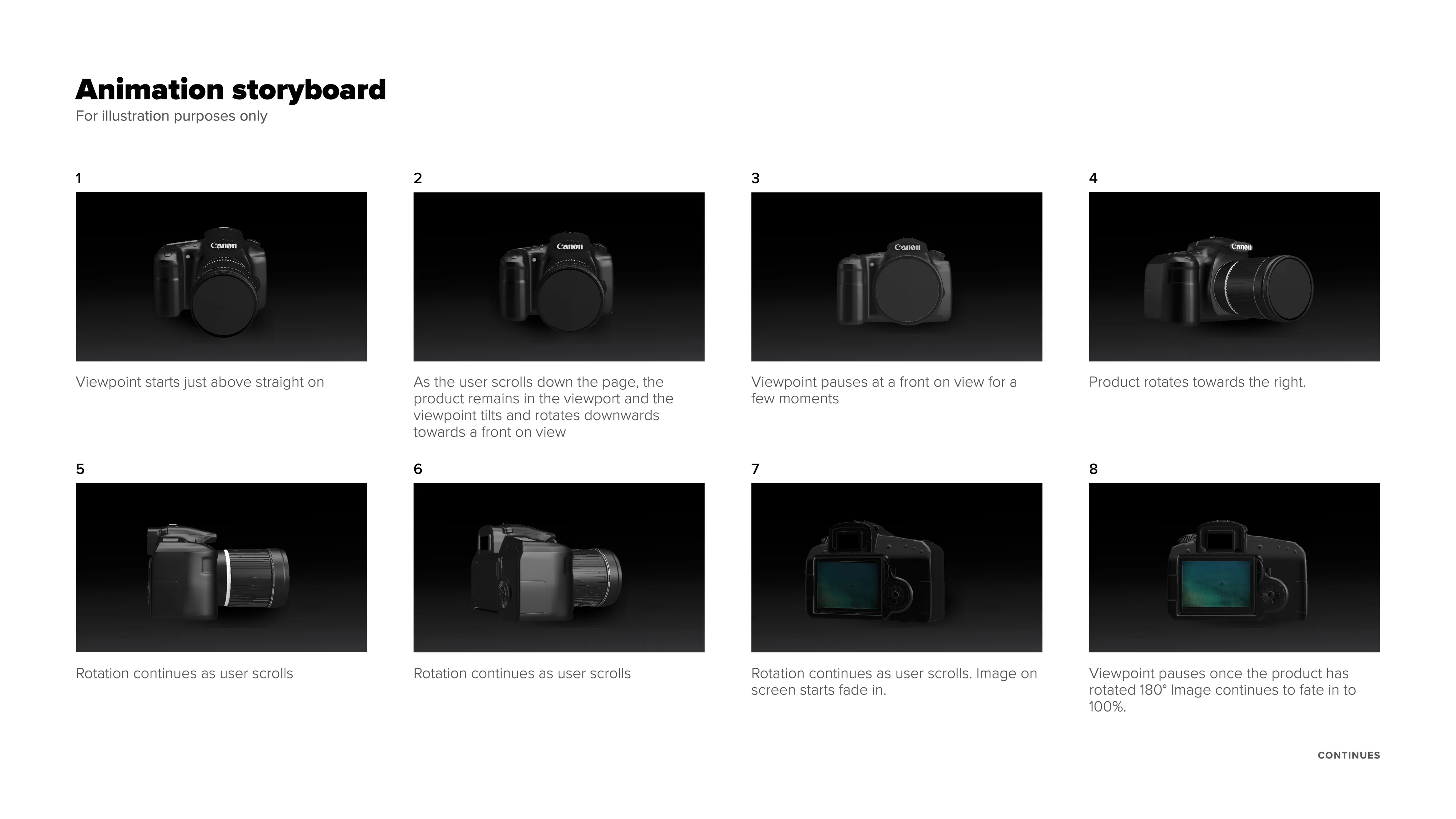 Although we didn't want the camera forever rotating on the webpage, but we rather wanted the camera to show us how 8K videos were shot in this camera. Therefore we did the following transition.