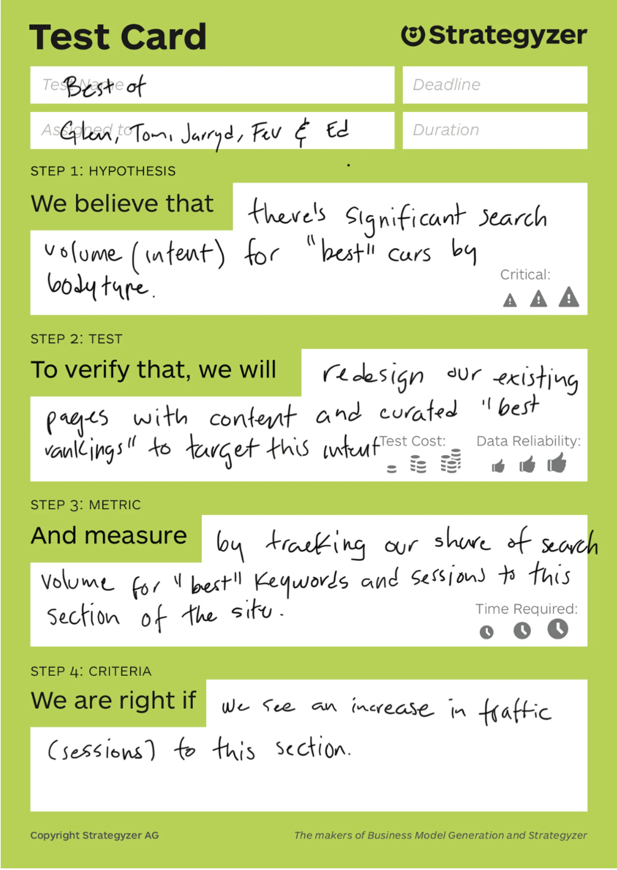 - Test. What do we need to change in order for this to be a success?