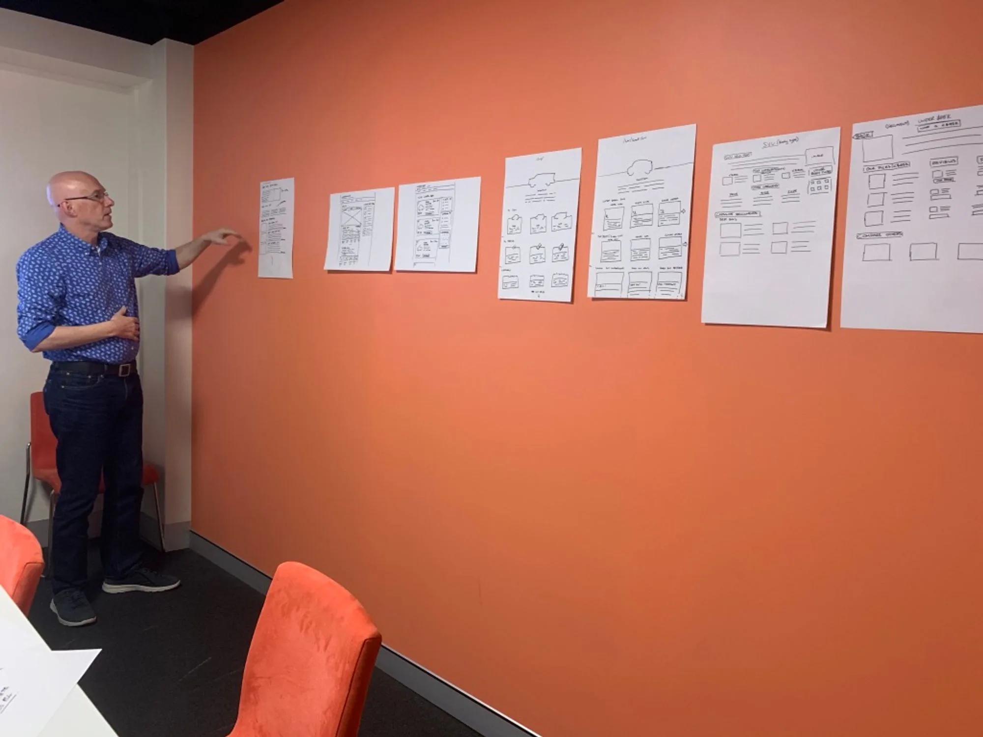 - Playback. Summarising highlights of what happened during the sessions. Explaining how designs are going to be used, and talking about the common patterns used across all designs.