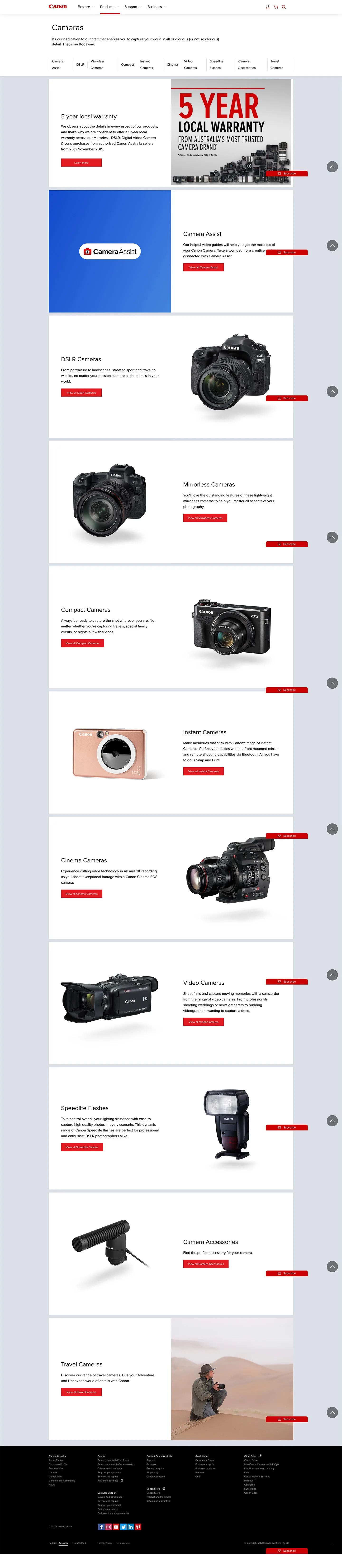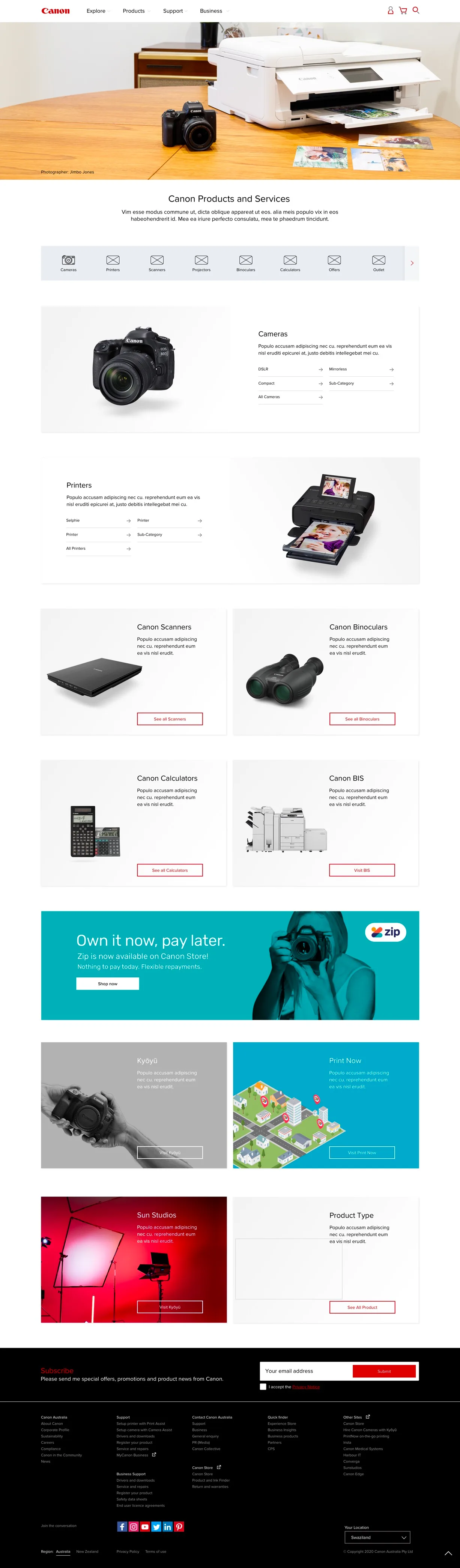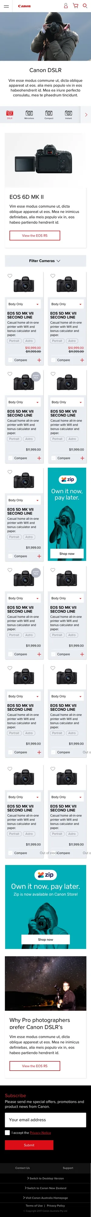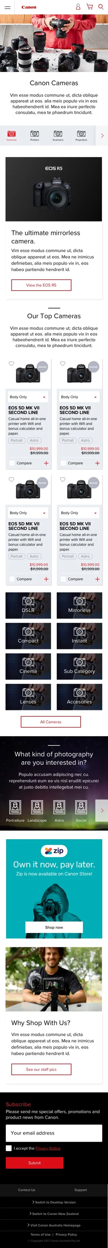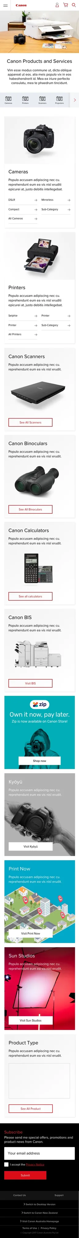 - Be able to display Canon range of product categories in an user friendly way.