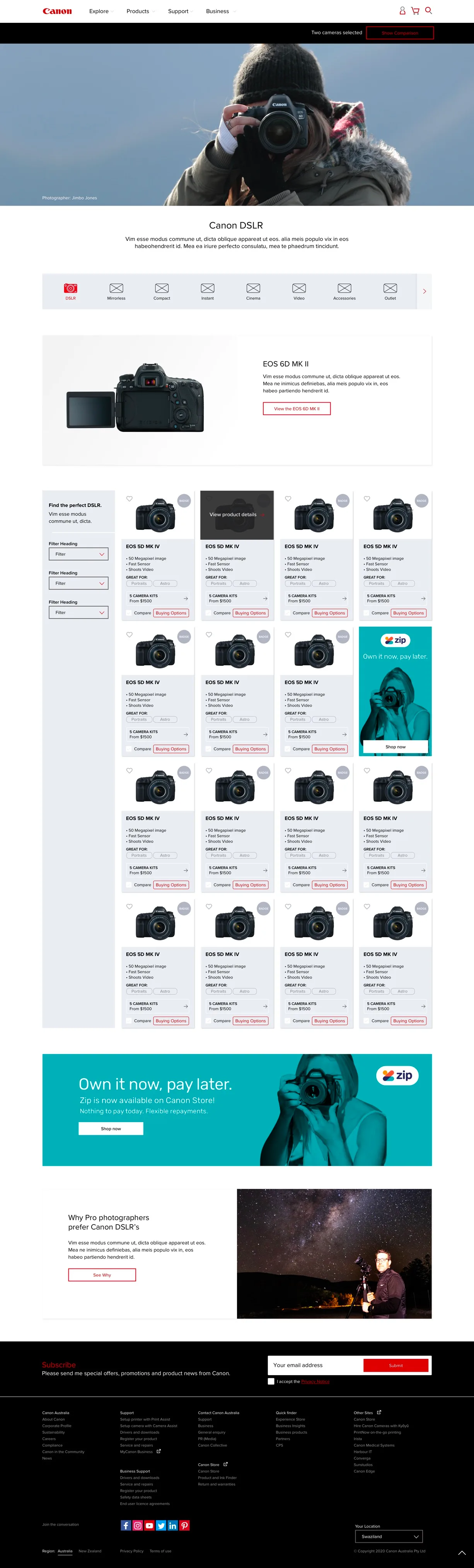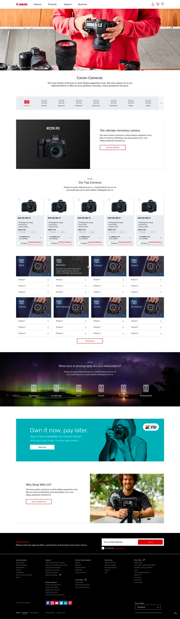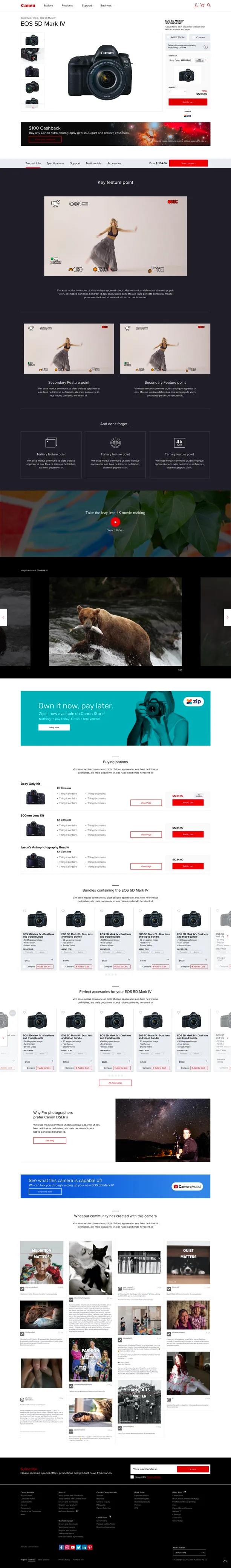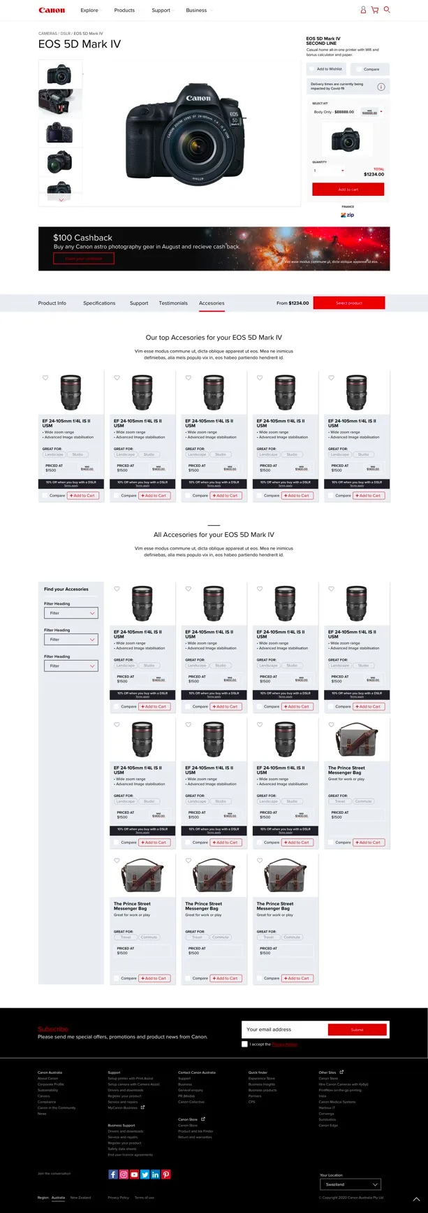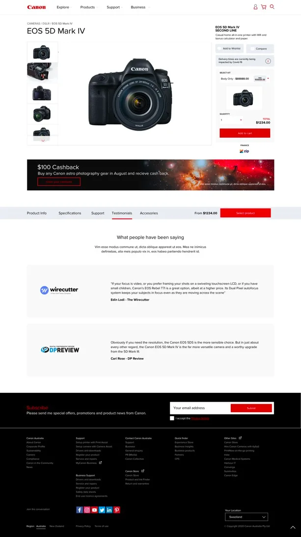 - Be able to display Canon range of product categories in an user friendly way.