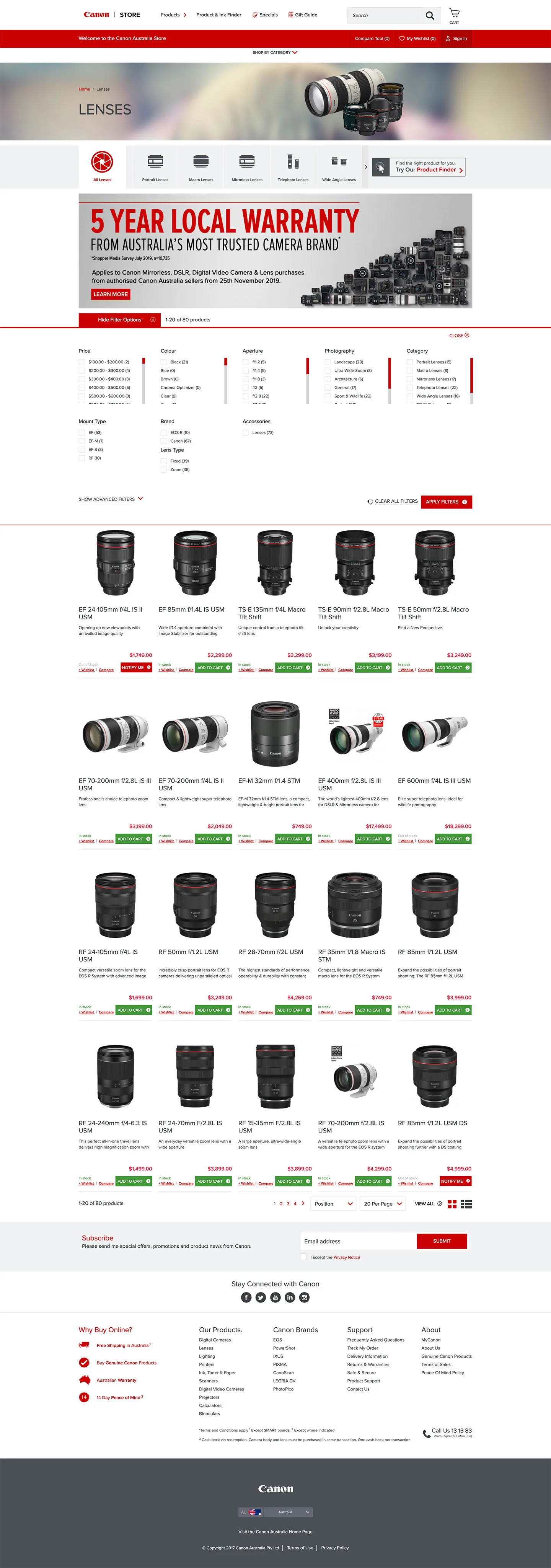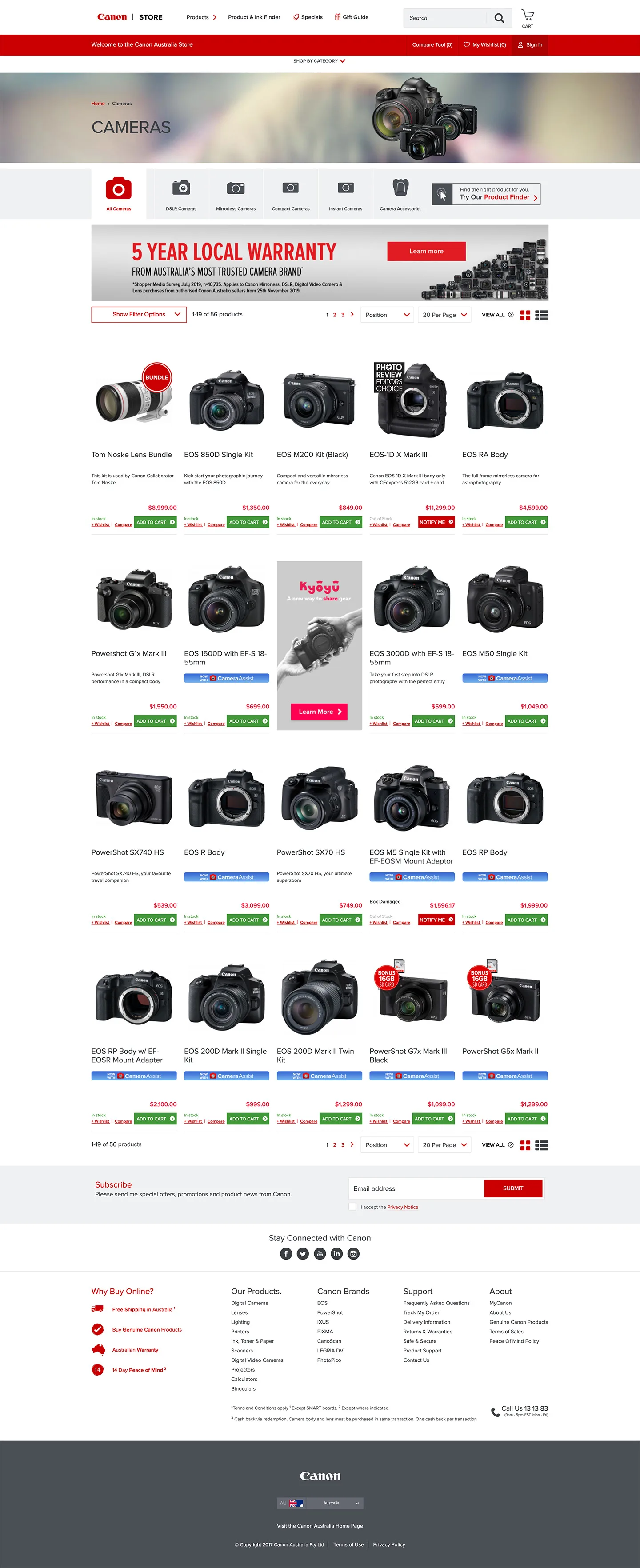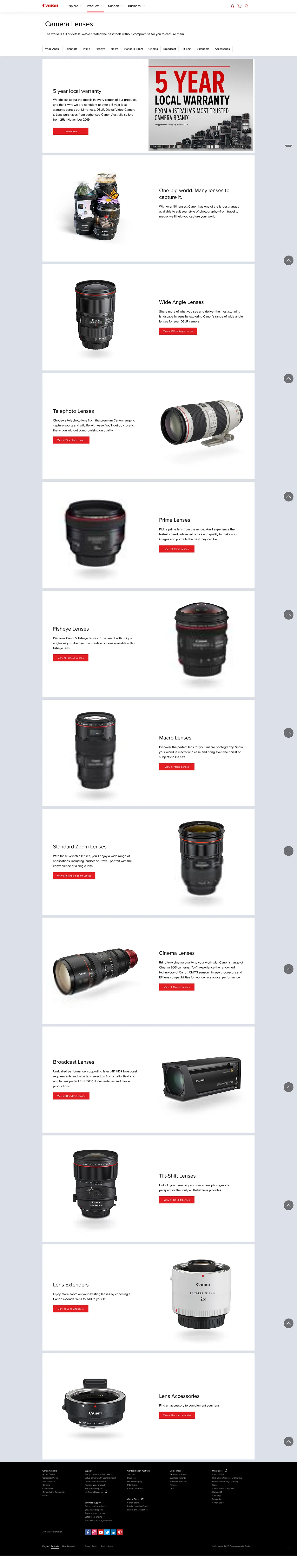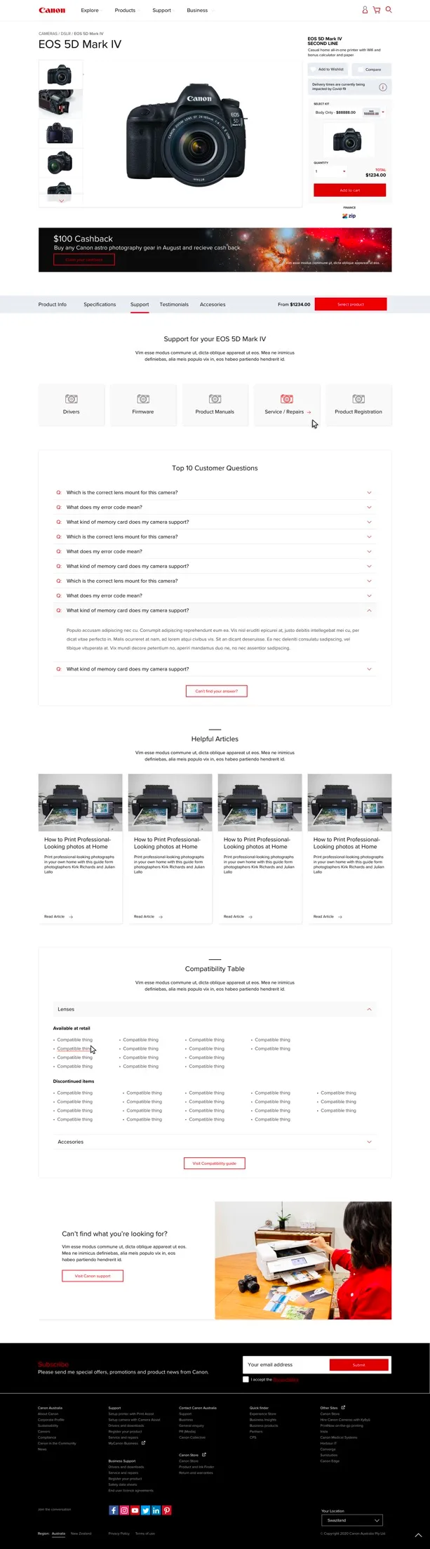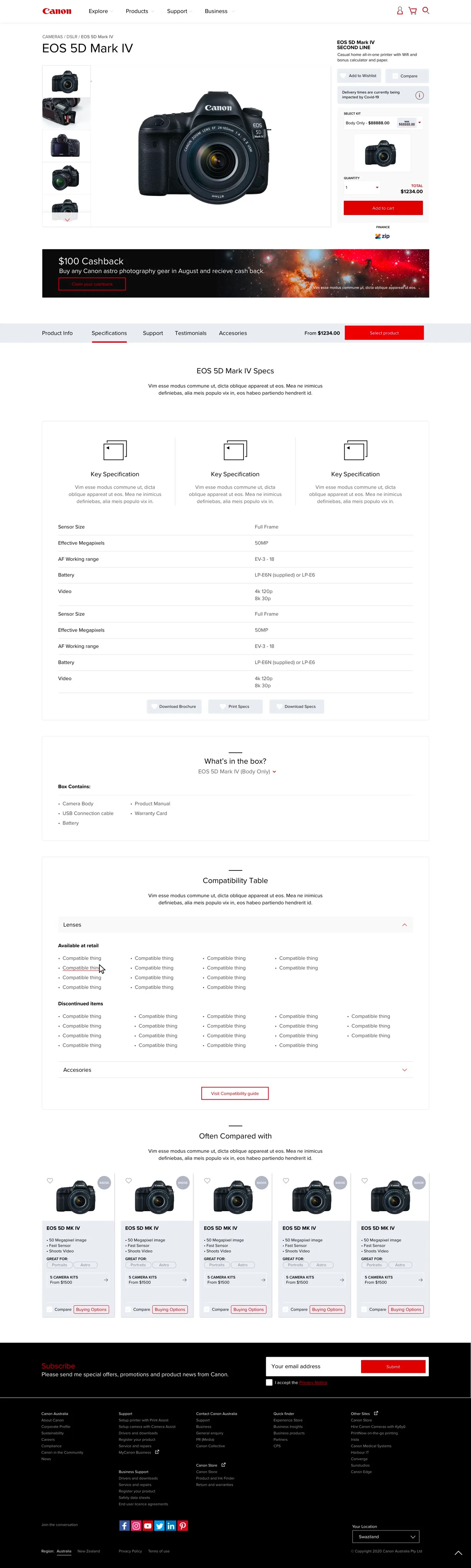 - Be able to display Canon range of product categories in an user friendly way.