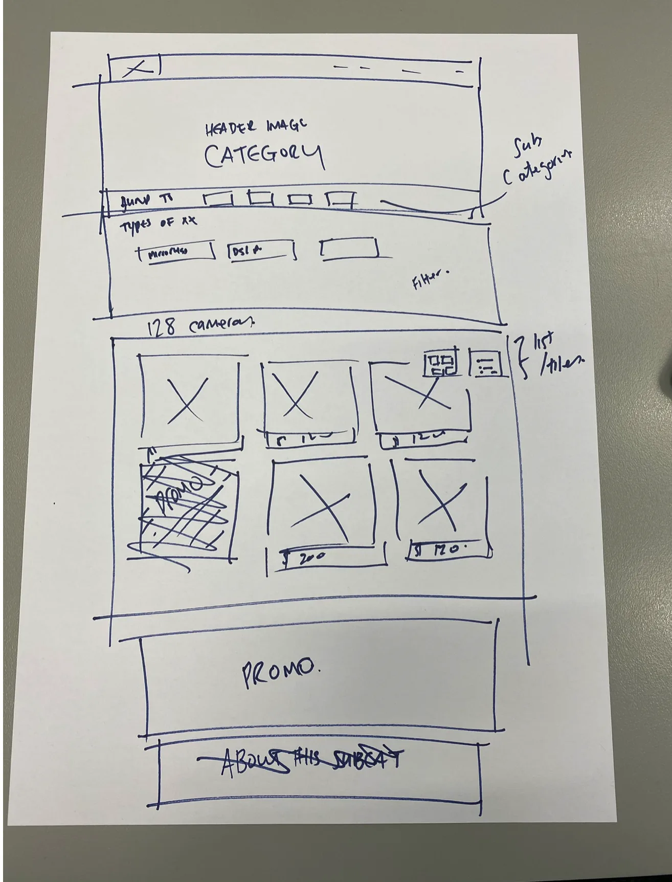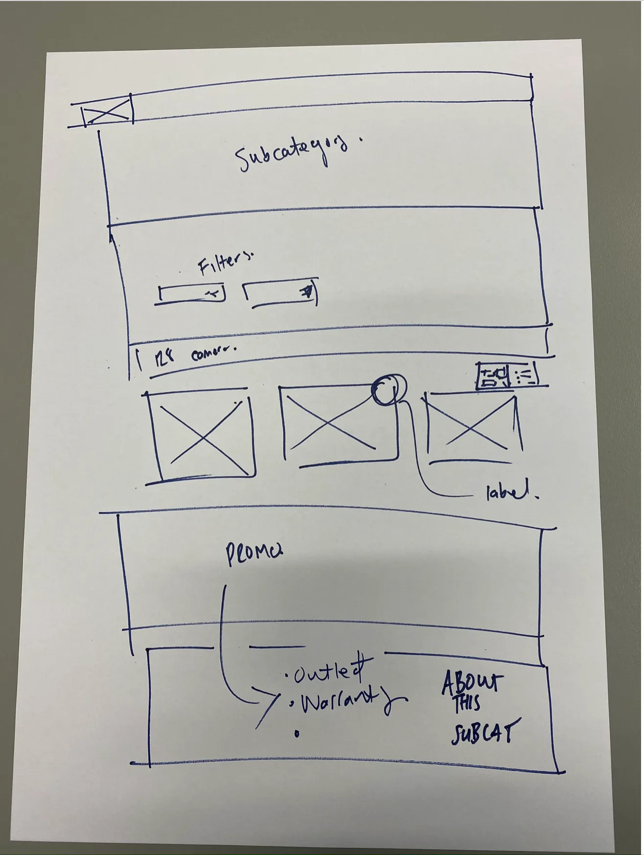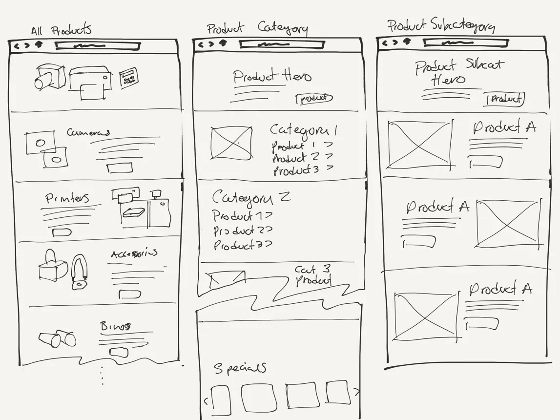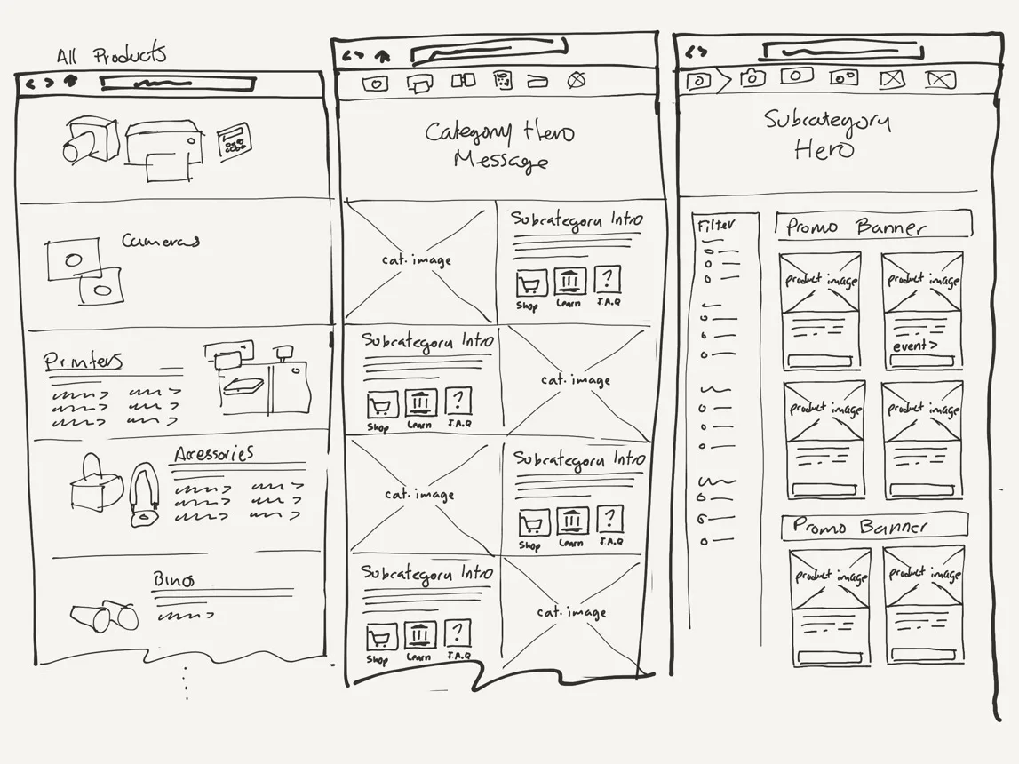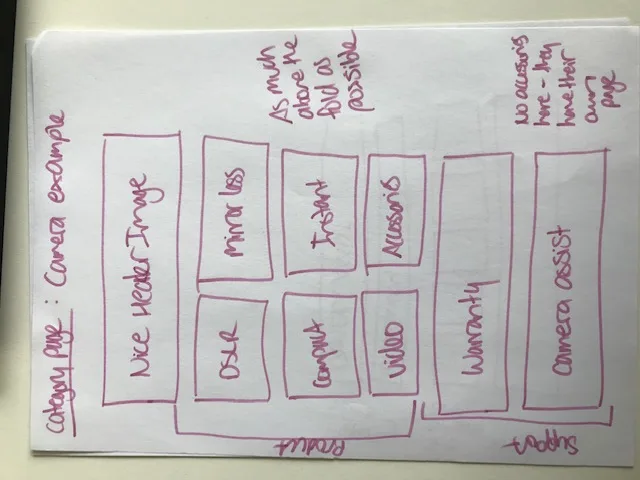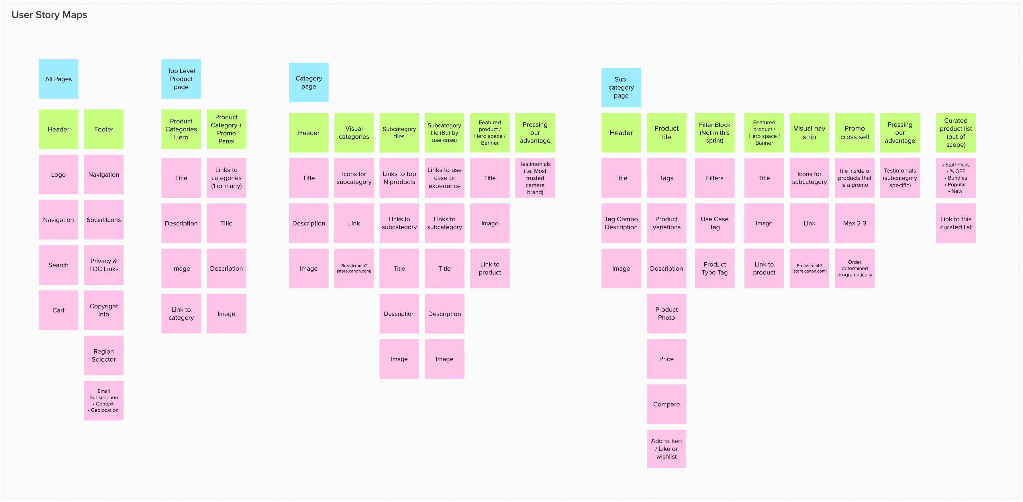 Prior to our first workshop, as we moved into the first sprint, we took the section of the map that was labeled Sprint One: Category and Product Subcategory Pages.