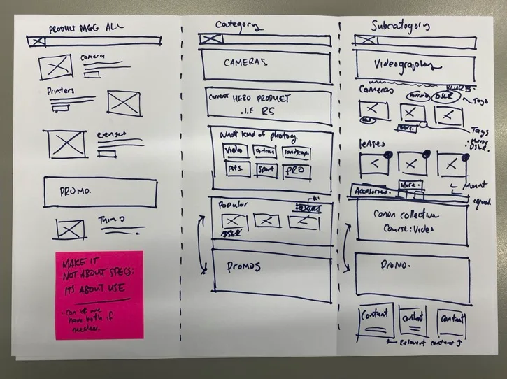 Our Product Strategy session produced two things from wanting to merge Canon's brand website and the e-Commerce site: