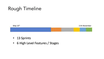With each of the modules of the Story Map helping as sprint scope, we decided to daisy chain the design and development sprints as follows.